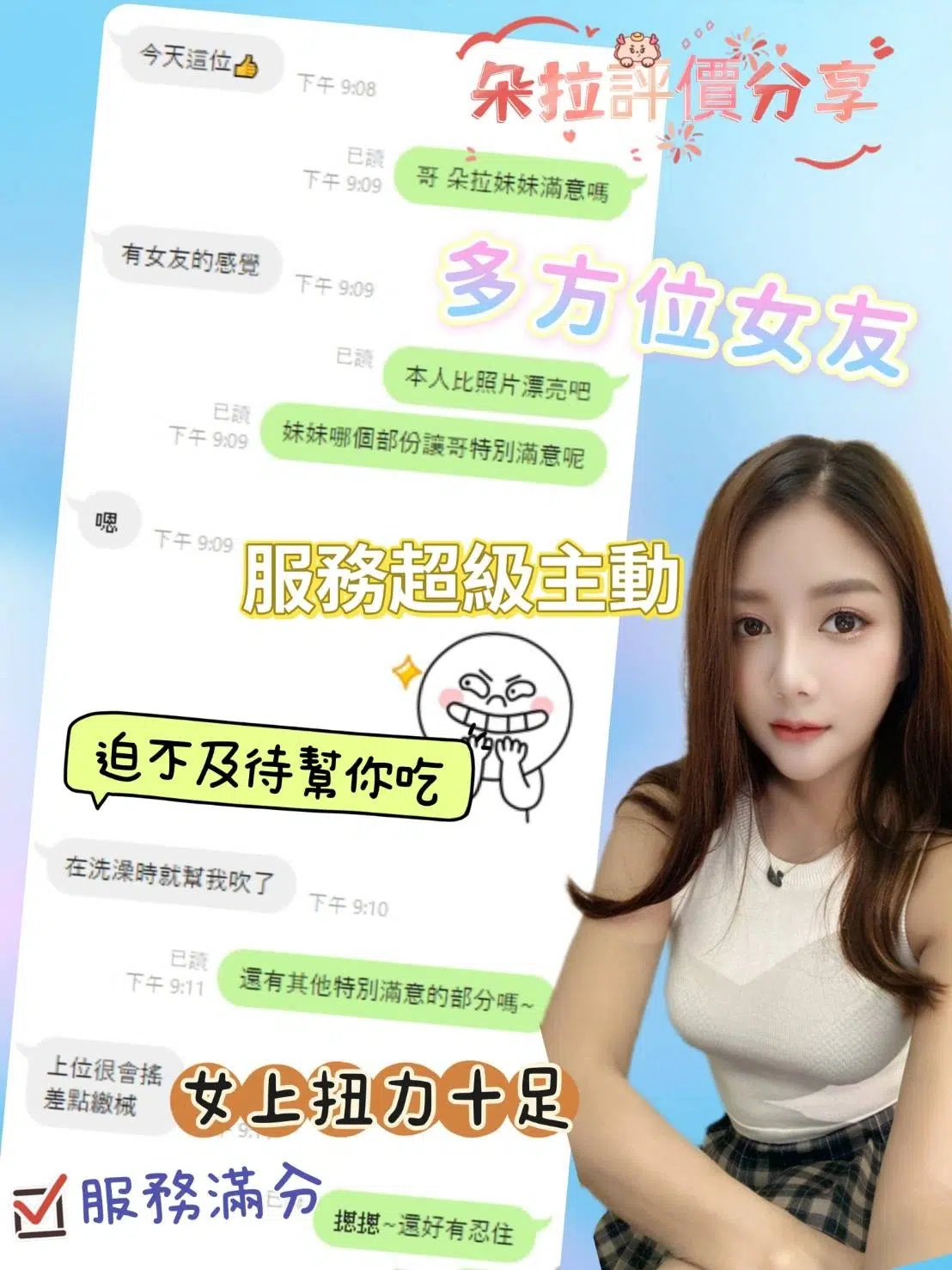 按摩,殘廢澡,可親嘴,無套吹,口爆,品鮑,輕功,奶推,快餐,2S