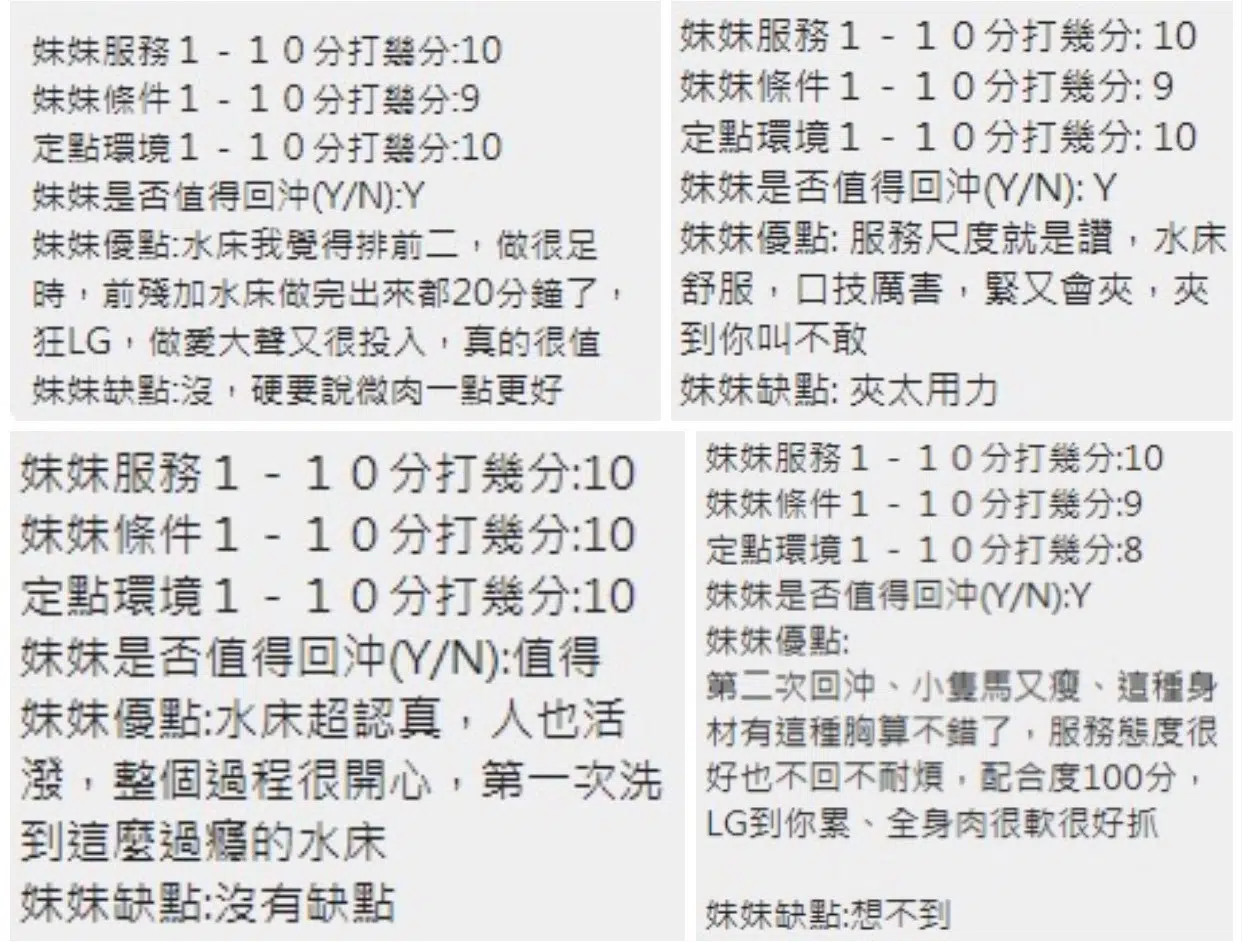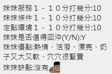 奶砲,按摩,69,共浴,LG(舌吻)依氣氛衛生而定,可親嘴,無套吹,口爆,品鮑,舔蛋,奶推,屁推,顏射,水床浴,變裝(自備免付),絲襪(自備免付),中文溝通,快餐,2S