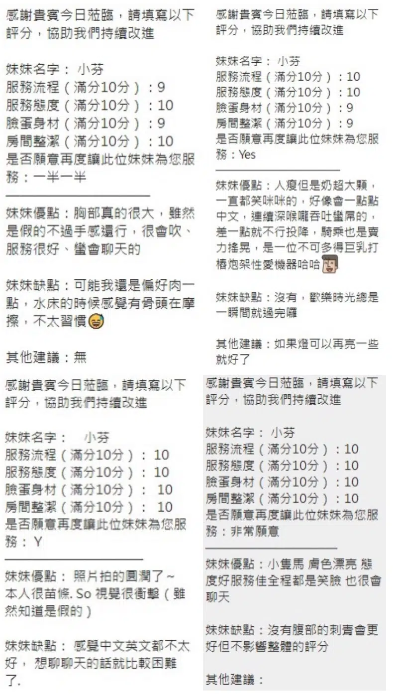 奶砲,按摩,69,共浴,LG(舌吻)依氣氛衛生而定,可親嘴,無套吹,口爆,品鮑,舔蛋,奶推,屁推,顏射,水床浴,變裝(自備免付),無套做,無套內射,快餐,2S