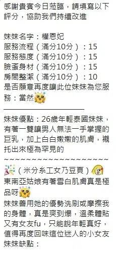 奶砲,按摩,69,共浴,LG(舌吻)依氣氛衛生而定,可親嘴,無套吹,口爆,品鮑,舔蛋,奶推,屁推,顏射,水床浴,變裝(自備免付),無套做,無套內射,中文溝通,快餐,2S