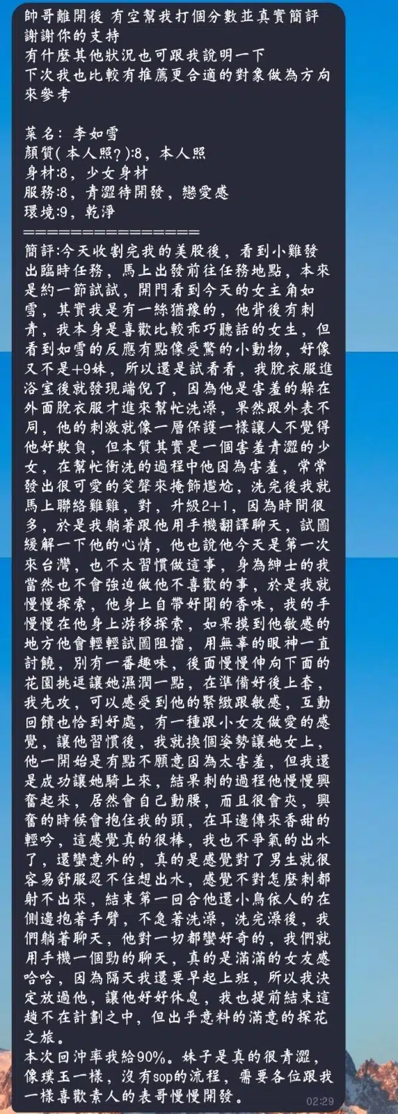 奶砲,按摩,69,LG(舌吻)依氣氛衛生而定,可親嘴,無套吹,口爆,品鮑,奶推,屁推,顏射,快餐,2S,NS