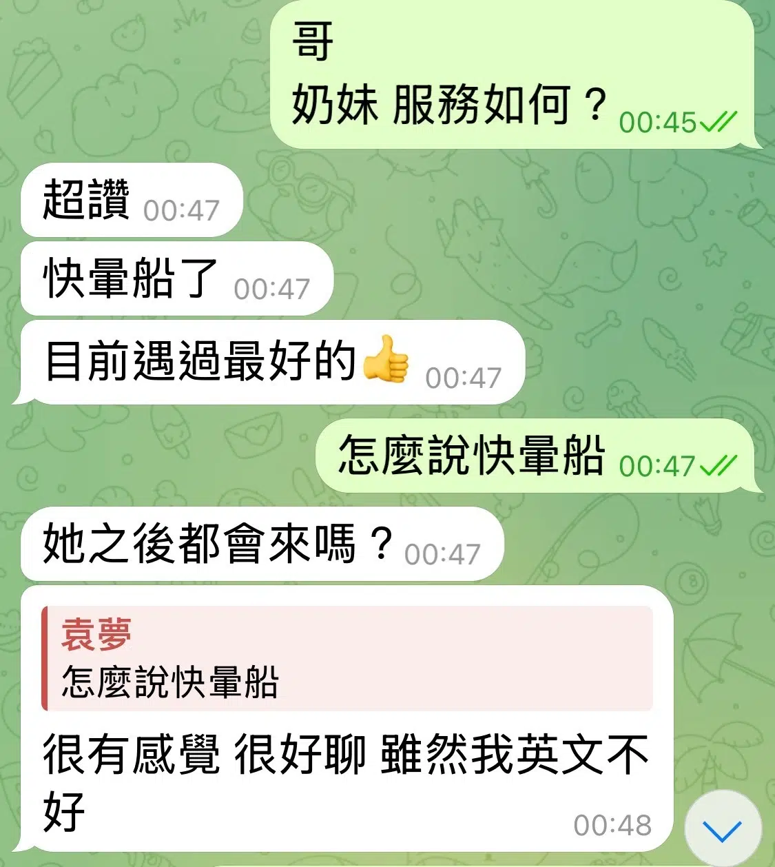 奶砲,毒龍,按摩,69,共浴,LG(舌吻)依氣氛衛生而定,可親嘴,無套吹,口爆,品鮑,舔蛋,奶推,屁推,顏射,浴中蕭,絲襪,自慰秀,快餐,2S,NS