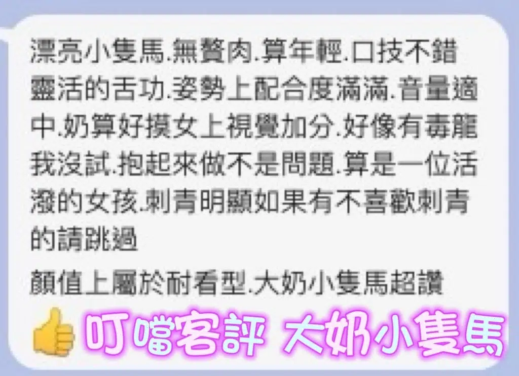 奶砲,毒龍,按摩,69,共浴,LG(舌吻)依氣氛衛生而定,可親嘴,無套吹,口爆,品鮑,舔蛋,顏射,深喉嚨,艷舞秀,變裝(自備免付),自慰秀,中文溝通,快餐,包夜